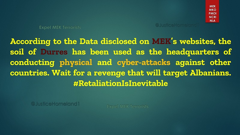 According to the Data disclosed on MEK’s websites, the soil of Durres has been used as the headquarters of conducting physical and cyber-attacks against other countries.