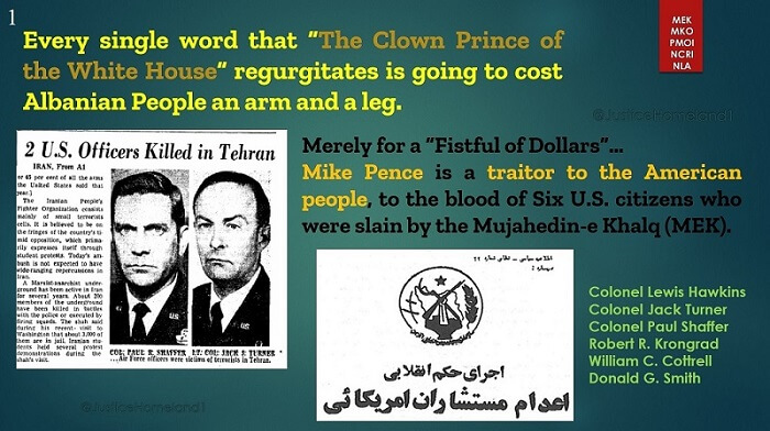 Mike Pence is a traitor to the American people, to the blood of Six U.S. citizens who were slain by the Mujahedin-e Khalq (MEK).